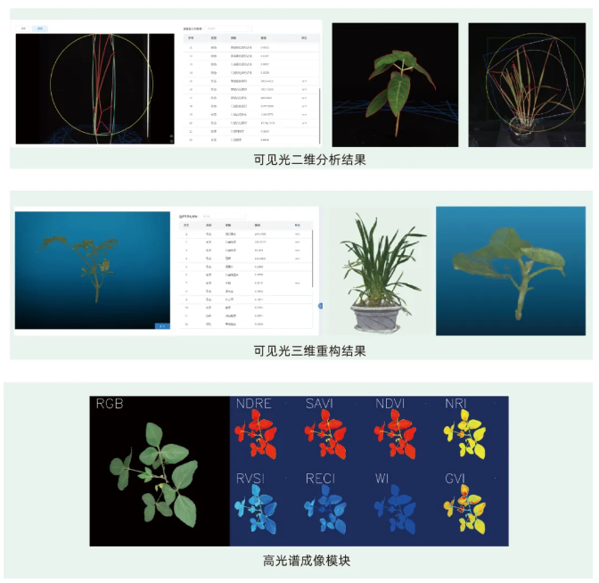 在硬件層面,托普云農高度整合可見光二維三維、高光譜、多光譜、紅外熱成像、激光雷達等先進成像技術,以及環境監測、自動稱重等多種高精度傳感器,實現針對糧食作物、經濟作物等不同類型植物的形態、顏色、紋理、長勢、組分含量等上百種表型指標的規范化表征,并支持針對特定作物、特定表型指標進行定制化開發及優化,滿足多樣化需求。
