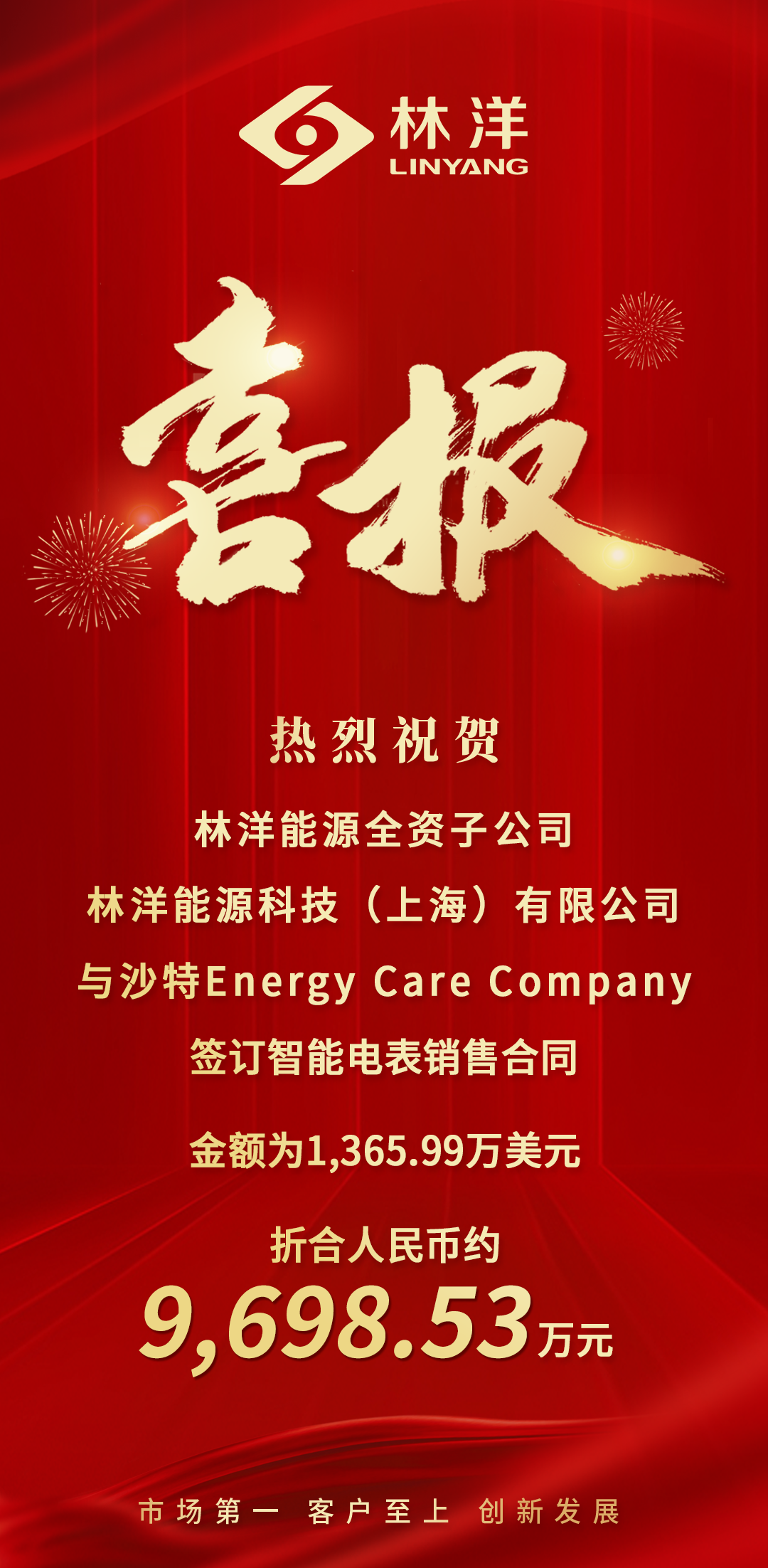 11月5日晚間,江蘇林洋能源股份有限公司(以下簡稱“林洋能源”或“公司”)發(fā)布公告,公司全資子公司林洋能源科技(上海)有限公司(以下簡稱“上海林洋”)與沙特Energy Care Company(以下簡稱“沙特ECC”)簽訂智能電表銷售合同。根據(jù)協(xié)議,上海林洋將負(fù)責(zé)提供智能電表產(chǎn)品,產(chǎn)品金額為1,365.99萬美元,折合人民幣約為9,698.53萬元。