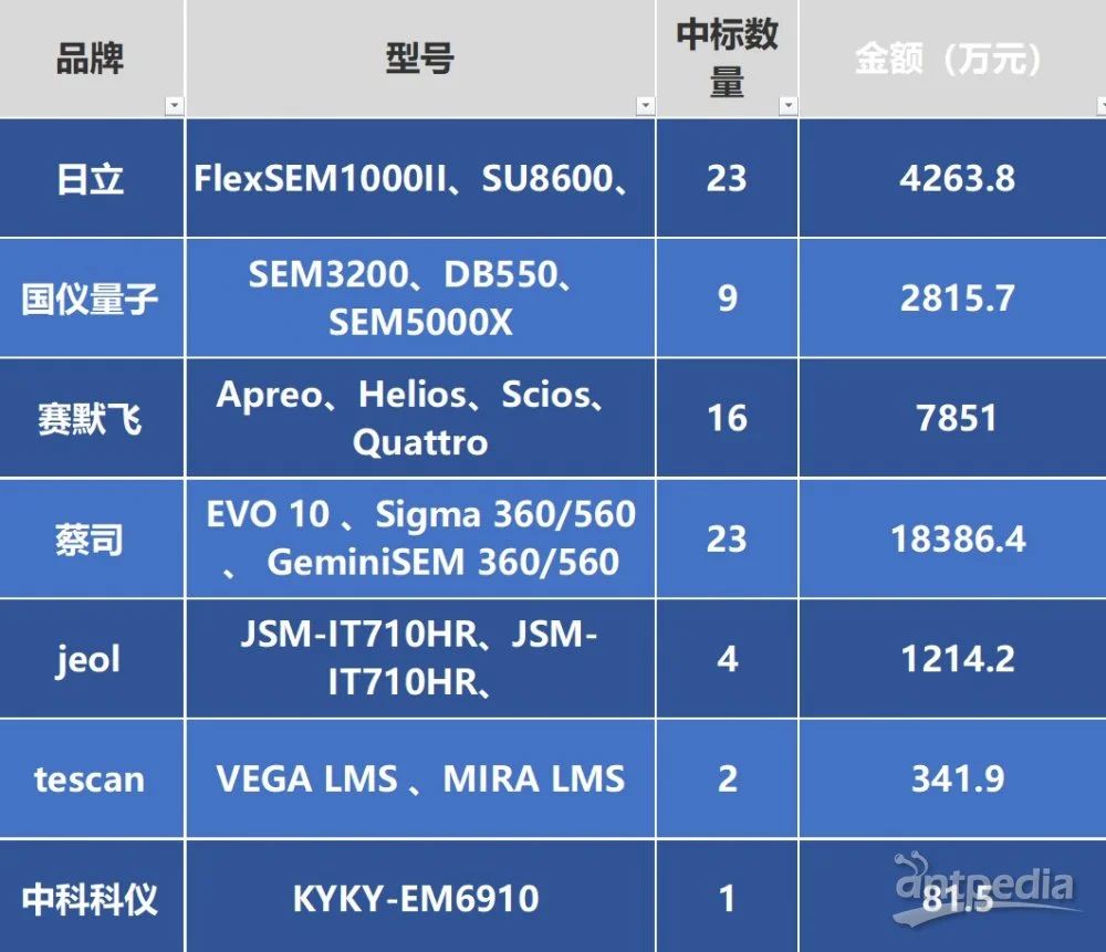 JEOL:中標(biāo)4臺,金額1214.2萬元,占總數(shù)量的4.55%,占總金額約4%。
