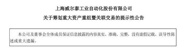 2024年12月19日,上海威爾泰工業(yè)自動化股份有限公司(簡稱:威爾泰)發(fā)布《關(guān)于籌劃重大資產(chǎn)重組暨關(guān)聯(lián)交易的提示性公告》。