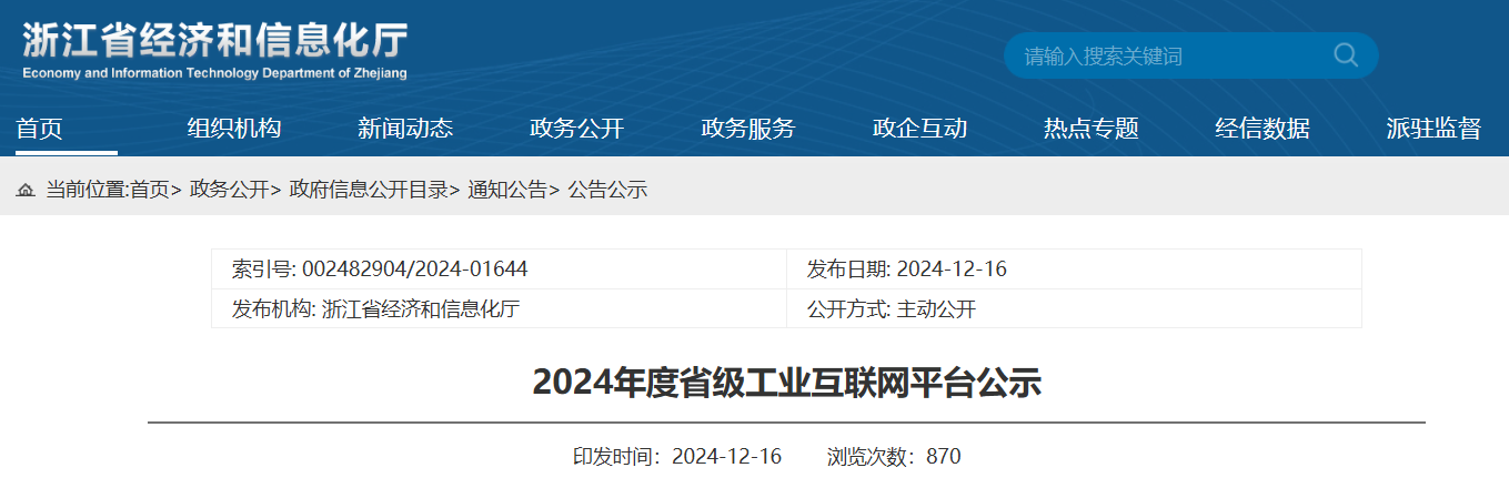 12月16日,浙江省經濟和信息化廳正式公布“2024年度省級工業互聯網平臺”名單公示結束,浙江正泰儀器儀表有限責任公司(簡稱“正泰儀表”)成功入選。