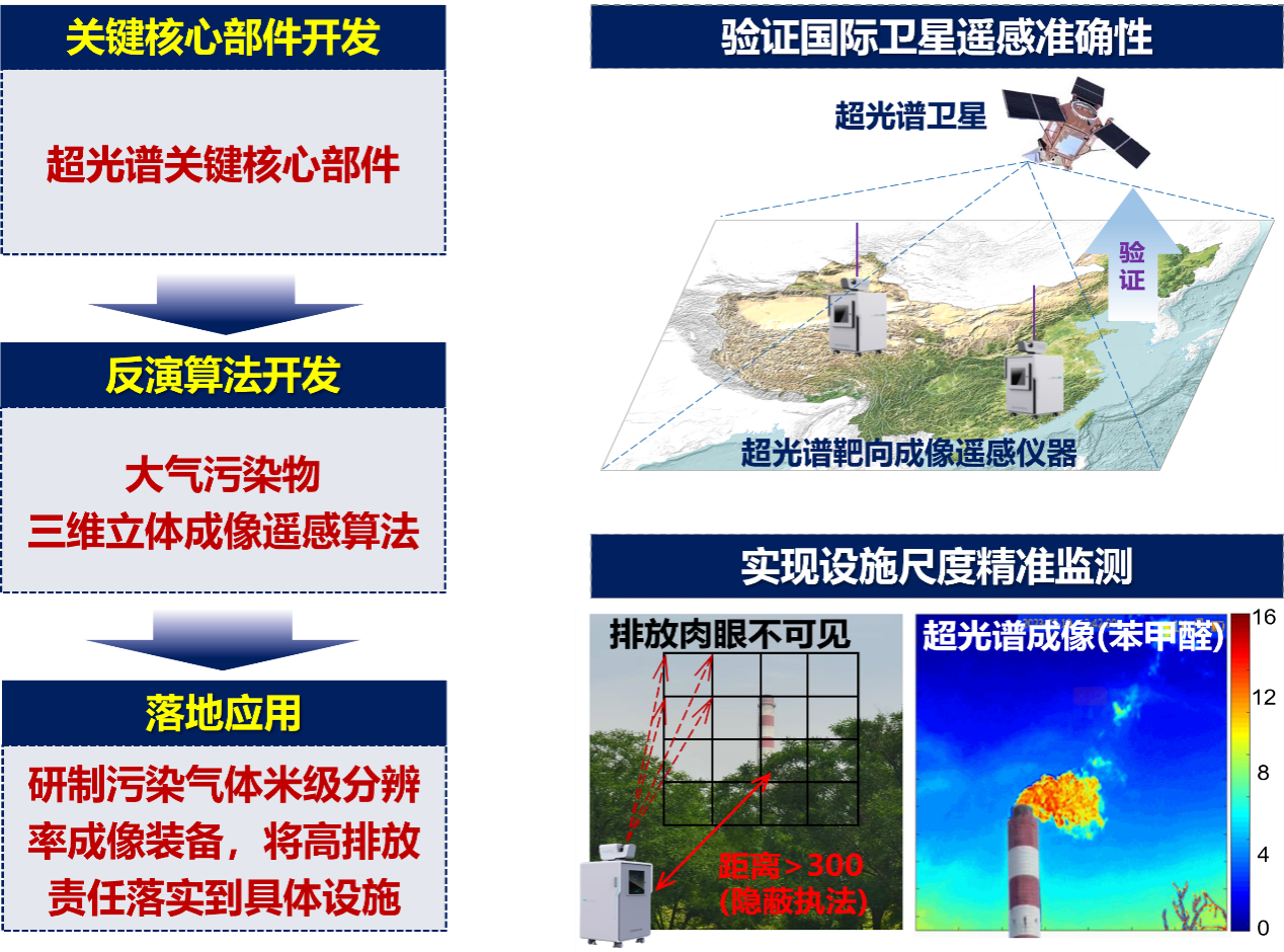 地基超光譜成像遙感是獲取污染氣體立體分布信息的重要技術(shù),也是驗證國內(nèi)外衛(wèi)星遙感準(zhǔn)確性的標(biāo)準(zhǔn)方法。隨著我國大氣污染防治進(jìn)入深水區(qū),空氣質(zhì)量持續(xù)改善亟需更高時空分辨率的靶向成像技術(shù),將排放責(zé)任從公里級網(wǎng)格明確到米級尺度的具體設(shè)施,從而避免對合規(guī)排放企業(yè)正常生產(chǎn)的干擾,促進(jìn)經(jīng)濟(jì)增長和空氣質(zhì)量改善雙向并進(jìn)。