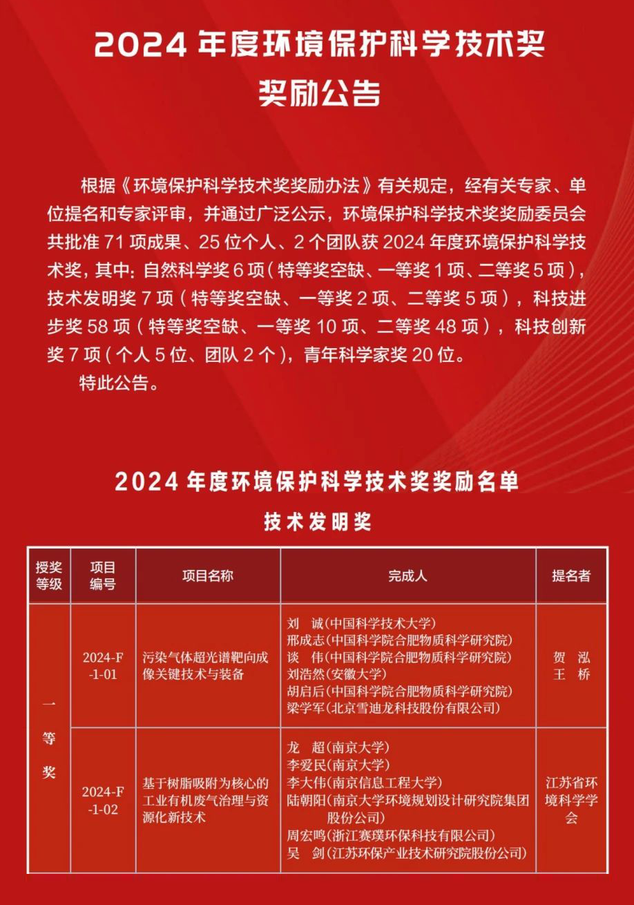1月10日,生態(tài)環(huán)境部發(fā)布2024年度環(huán)境保護(hù)科學(xué)技術(shù)獎獎勵公告。中國科學(xué)技術(shù)大學(xué)、中國科學(xué)院合肥物質(zhì)科學(xué)研究院、安徽大學(xué)、北京雪迪龍科技股份有限公司共同完成的科研成果“污染氣體超光譜靶向成像關(guān)鍵技術(shù)與裝備”,由賀泓、王橋兩位中國工程院院士提名,榮獲2024年度“環(huán)境保護(hù)科學(xué)技術(shù)獎”技術(shù)發(fā)明獎一等獎。