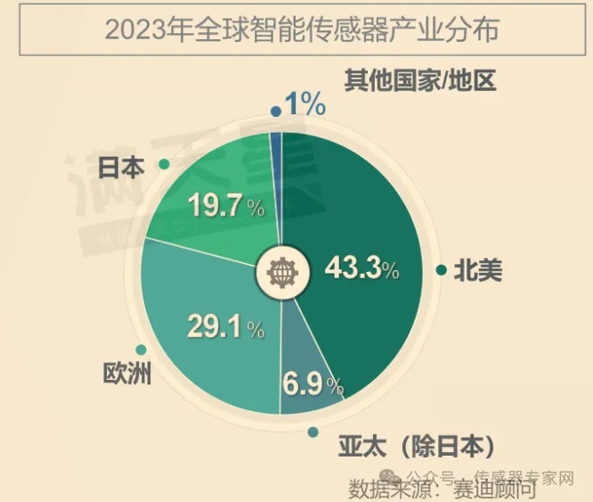 據(jù)工信部下屬產(chǎn)業(yè)研究機(jī)構(gòu)賽迪顧問(wèn)數(shù)據(jù)顯示,以美國(guó)為主導(dǎo)的北美地區(qū)占據(jù)全球智能傳感器產(chǎn)業(yè)產(chǎn)能的43.3%,是占比最高的地區(qū),其次歐洲占比29.1%,日本占比19.7%,亞太地區(qū)(除日本)占比6.9%,其他國(guó)家/地區(qū)占比1%。在產(chǎn)能方面,歐美地區(qū)在智能傳感器領(lǐng)域的產(chǎn)能占據(jù)全球主要地位。(詳細(xì)數(shù)據(jù)參看《3644.7億元,中國(guó)是全球傳感器“小”國(guó)!發(fā)展刻不容緩!》)