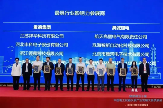 展會(huì)規(guī)模空前,參會(huì)人數(shù)400余人,近200家參展企業(yè)展示了傳感器、電容器、開關(guān)與繼電器等產(chǎn)品。采用 “以會(huì)帶展、以展促會(huì)” 模式,打通電工儀器儀表行業(yè)全產(chǎn)業(yè)鏈條,推動(dòng)各環(huán)節(jié)緊密銜接與協(xié)同發(fā)展。今年恰逢第50屆行業(yè)大會(huì),為彰顯會(huì)議的特殊意義和重要貢獻(xiàn),特別舉辦了“最具行業(yè)影響力展商”評(píng)選活動(dòng),評(píng)選出貴德集團(tuán)等十家行業(yè)內(nèi)最具代表性的品牌企業(yè)。工業(yè)和信息化部裝備工業(yè)一司原一級(jí)巡視員、中國(guó)儀器儀表行業(yè)協(xié)會(huì)九屆理事會(huì)副理事長(zhǎng)候選人(駐會(huì))苗長(zhǎng)興,中國(guó)儀器儀表行業(yè)協(xié)會(huì)副秘書長(zhǎng)程紅,以及哈爾濱電工儀表研究所有限公司黨委書記、董事長(zhǎng)趙斌為這10家最具影響力的參展商隆重授牌。