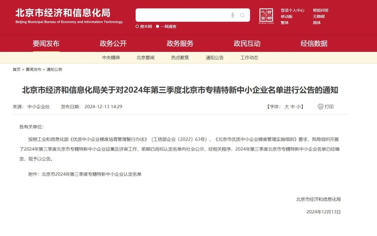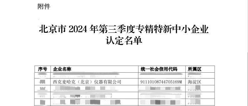近日,北京市經(jīng)濟(jì)和信息化局發(fā)布2024年度第三季度專(zhuān)精特新中小企業(yè)名單。西克麥哈克(北京)儀器有限公司憑借領(lǐng)先的技術(shù)能力,豐富的應(yīng)用經(jīng)驗(yàn)與不懈的創(chuàng)新精神獲評(píng)北京市“專(zhuān)精特新”中小企業(yè)。