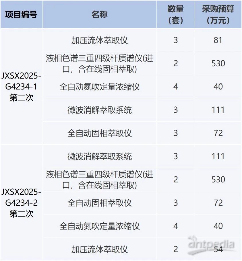 近日,江西省生態(tài)環(huán)境監(jiān)測中心就“監(jiān)測能力建設(二期)項目”新污染物調查監(jiān)測能力采購項目進行二次招標,此次共招標29套設備,包含多套液相色譜三重四級桿質譜儀、微波消解萃取系統(tǒng)等,采購預算1641萬元。本次招標提交投標文件截止時間為2025年07月10日 09點30分。