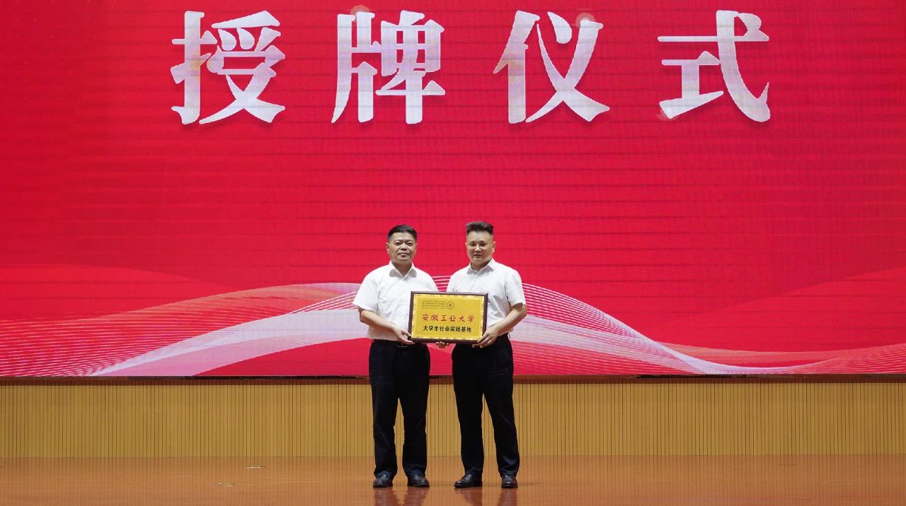 會(huì)議期間舉行了大學(xué)生社會(huì)實(shí)踐基地授牌儀式,安徽工業(yè)大學(xué)黨委書(shū)記陸林與天康集團(tuán)黨委副書(shū)記、總經(jīng)理毛文章代表雙方授接牌匾。