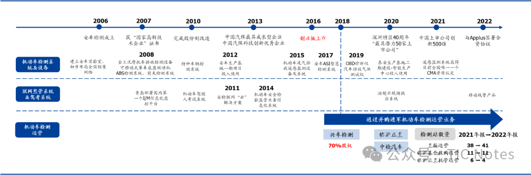 據(jù)悉,安車檢測(cè)成立于2006年,2010年完成股份制改造,2016年于創(chuàng)業(yè)板上市。公司為機(jī)動(dòng)車檢測(cè)綜合服務(wù)商,業(yè)務(wù)覆蓋全國(guó)31個(gè)省市,初期主業(yè)圍繞機(jī)動(dòng)車檢測(cè)系統(tǒng)及檢測(cè)行業(yè)聯(lián)網(wǎng)監(jiān)管系統(tǒng),為業(yè)內(nèi)少數(shù)可提供系統(tǒng)方案設(shè)計(jì)、安裝集成、運(yùn)營(yíng)維護(hù)及行業(yè)監(jiān)管等全鏈條服務(wù)的檢測(cè)設(shè)備供應(yīng)商之一,下游客戶主要包括全國(guó)各地的機(jī)動(dòng)車檢驗(yàn)機(jī)構(gòu)、汽車制造廠、科研機(jī)構(gòu)等。2018年公司通過(guò)收購(gòu)興車檢測(cè)70%股權(quán)切入機(jī)動(dòng)車檢測(cè)站運(yùn)營(yíng),加速向下游產(chǎn)業(yè)鏈延伸,產(chǎn)業(yè)鏈布局持續(xù)完善。