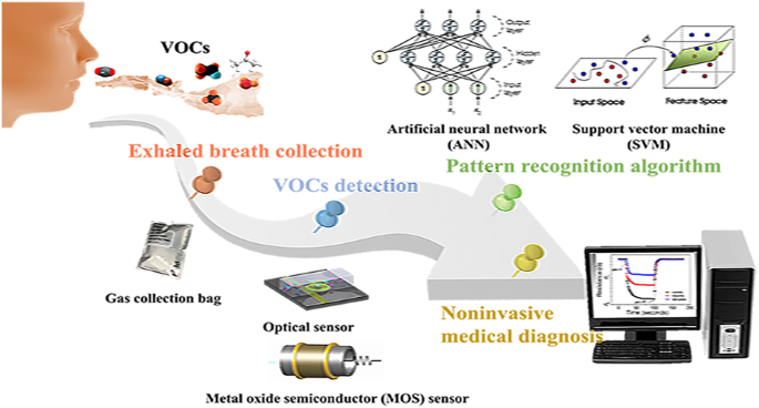 機器學習與模式識別技術(shù)賦予傳感器解析復(fù)雜氣體 “指紋” 的能力。浙江大學鄔建敏團隊基于石墨烯基嗅覺傳感器陣列,通過機器學習分析信號,結(jié)合 RF、Lasso、SVM 加權(quán)融合模型,提升了呼吸道感染類型檢測的魯棒性與準確性;瑞典林雪平大學與國家法醫(yī)學委員會團隊采用 32 個 MOS 氣體傳感器陣列,結(jié)合自適應(yīng)機器學習算法,實現(xiàn)了法醫(yī)鑒定中 VOC 的非侵入、實時分析。