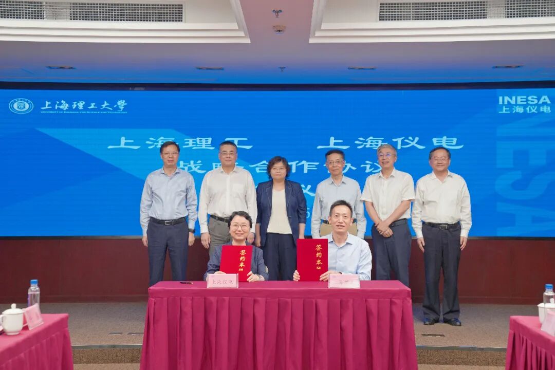 95日,上海儀電(集團)有限公司與上海理工大學簽署戰略合作協議。徐匯區副區長魏蘭;上海儀電黨委書記、董事長毛辰,黨委副書記、總裁張建明;上海理工大學黨委書記王凌宇,黨委副書記、校長朱新遠;中國工程院院士莊松林共同出席儀式并見證簽約。上海儀電副總裁張麗虹與上海理工大學黨委副書記、副校長劉德強代表雙方簽署協議。