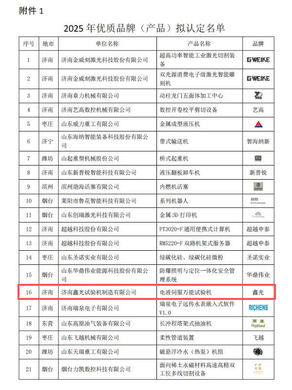 濟(jì)南鑫光電液伺服萬能試驗(yàn)機(jī)獲山東省2025年優(yōu)質(zhì)品