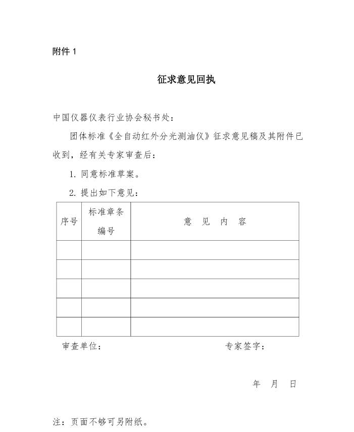 1. 征求意見回執(zhí)——全自動(dòng)紅外分光測(cè)油儀