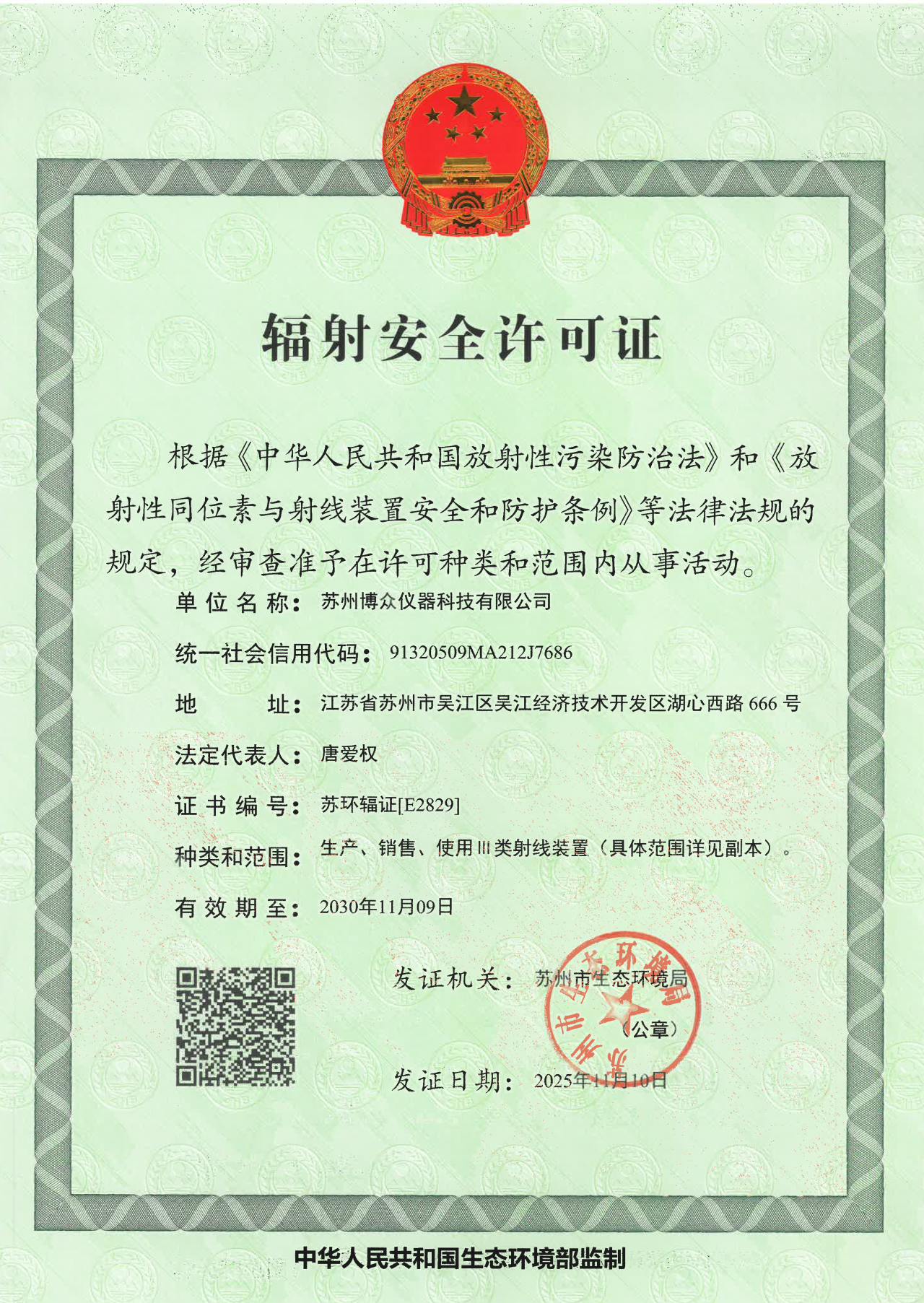 20251110日,蘇州博眾儀器科技有限公司(以下簡(jiǎn)稱“博眾儀器”)的BZ-F200透射電鏡獲批首張國(guó)產(chǎn)200kV透射電鏡“生產(chǎn)、銷售、使用Ⅲ類射線裝置”的輻射安全許可證,成為唯一獲批此資質(zhì)的國(guó)產(chǎn)透射電鏡企業(yè)。