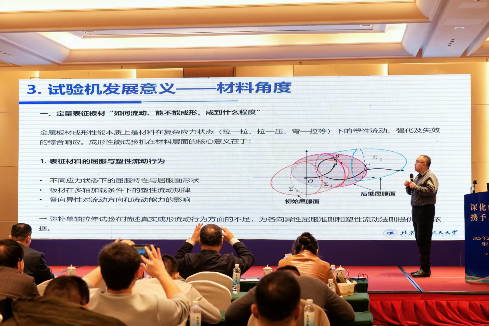 專家報告環(huán)節(jié),來自北京航空航天大學(xué)和試驗(yàn)儀器行業(yè)頭部企業(yè)的專家,分別圍繞金屬材料、非金屬材料測試技術(shù)發(fā)展趨勢、高溫及極端環(huán)境應(yīng)用、硬度、平衡機(jī)技術(shù)發(fā)展以及未來趨勢等主題發(fā)表精彩演講。